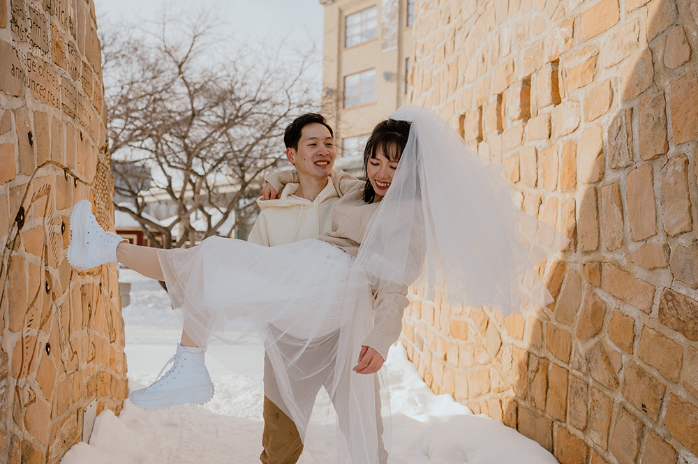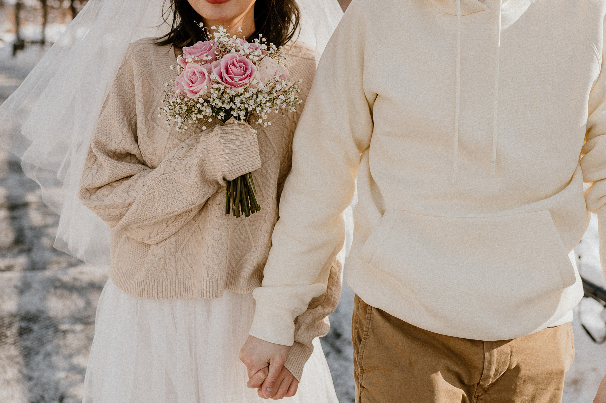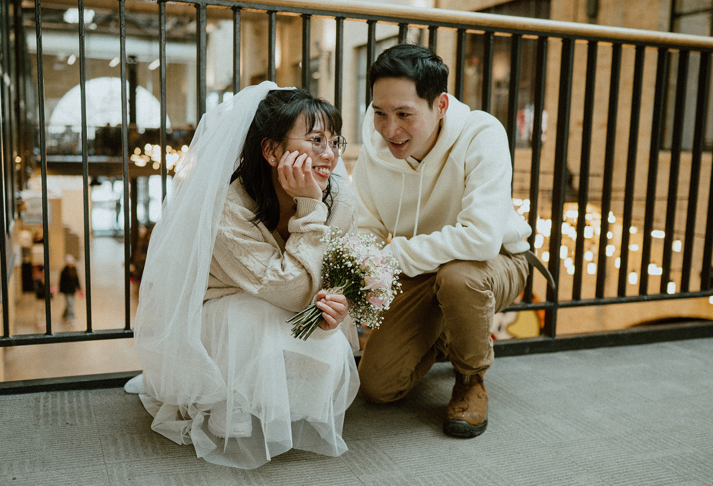 Xúng xính từ sớm, chúng mình đến điểm hẹn và đợi Kelsie, bạn photographer sẽ chụp hình cho chúng mình hôm đó. Thi thoảng vài người lạ lướt qua cười tươi với bọn mình và nói "Congratulations!", có 1 em bé nhỏ còn thỏ thẻ "You're beautiful!" - Làm cho Bích muốn rụng tim. Kelsie thì rất thân thiện và luôn chọc tụi mình cười để có những thướt ảnh chân thật nhất. Bạn ấy thích chụp những điều vốn có của chúng mình, làn da đỏ vì lạnh, tàn nhang hay dấu chân chim, cả những lúc chớp mắt, bạn ấy sẽ giữ lại hết như là vẻ đẹp của khoảnh khắc.
