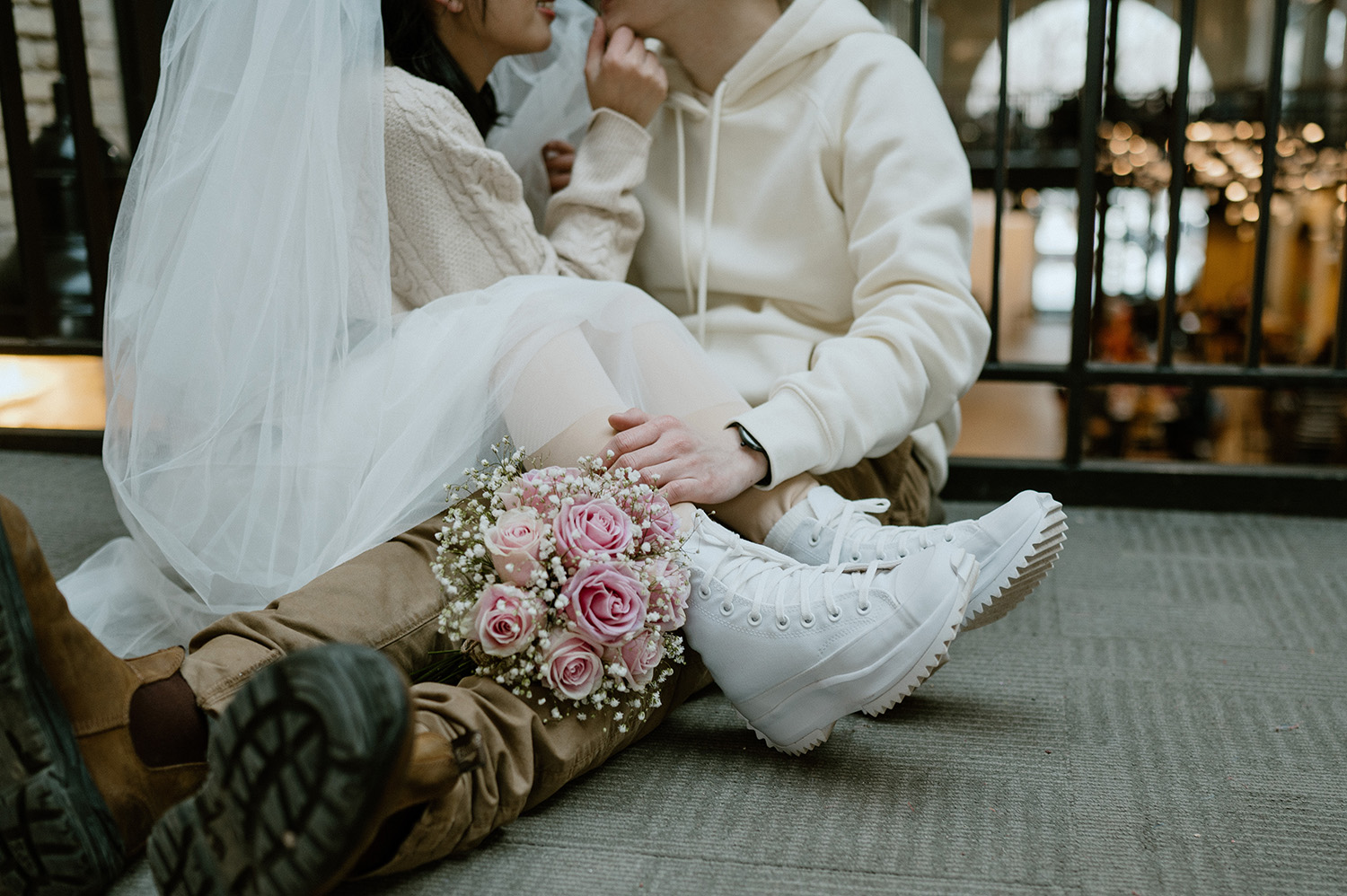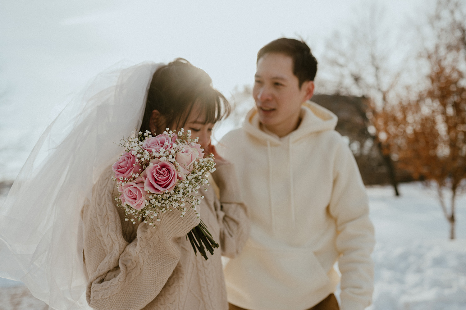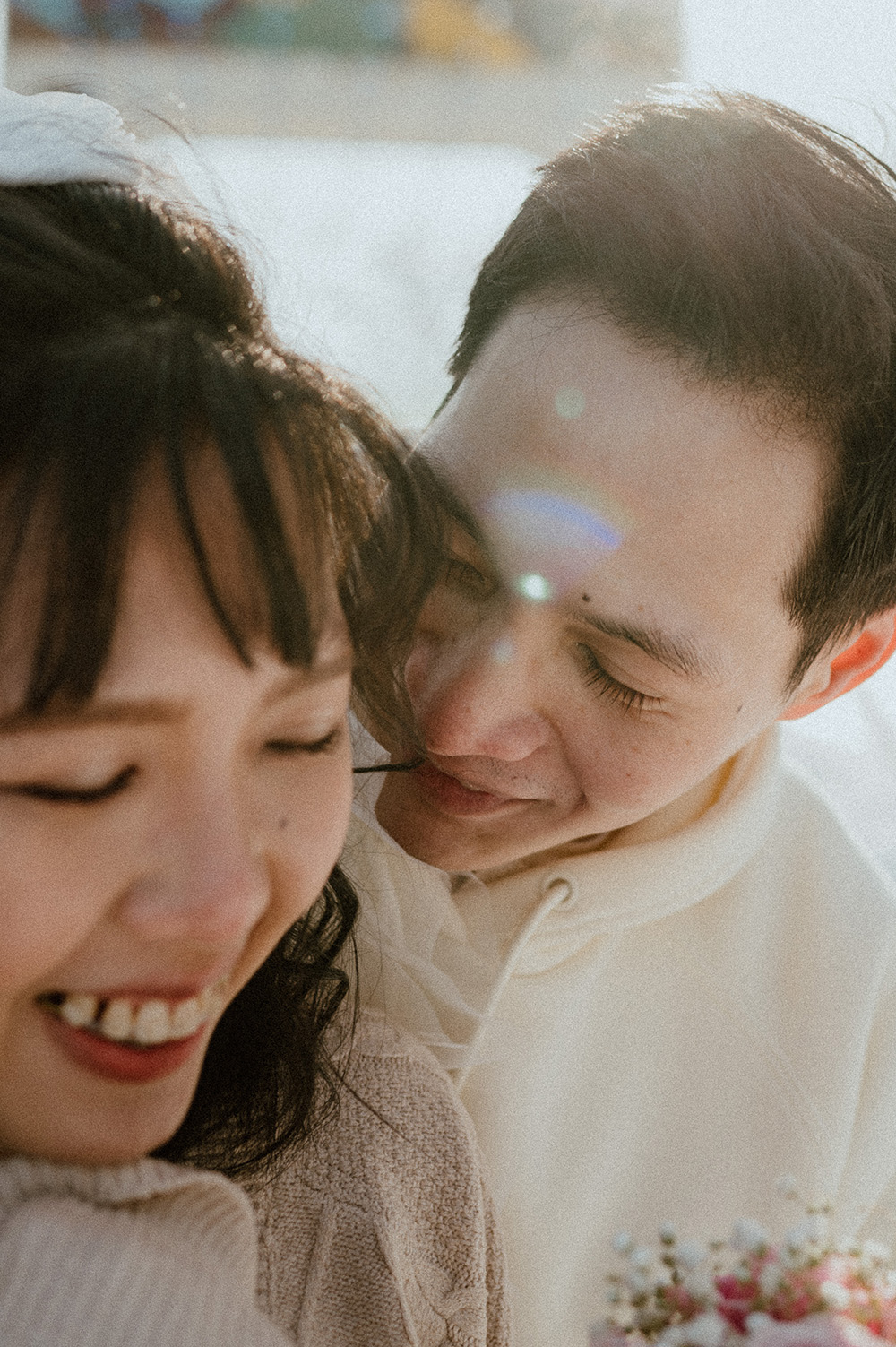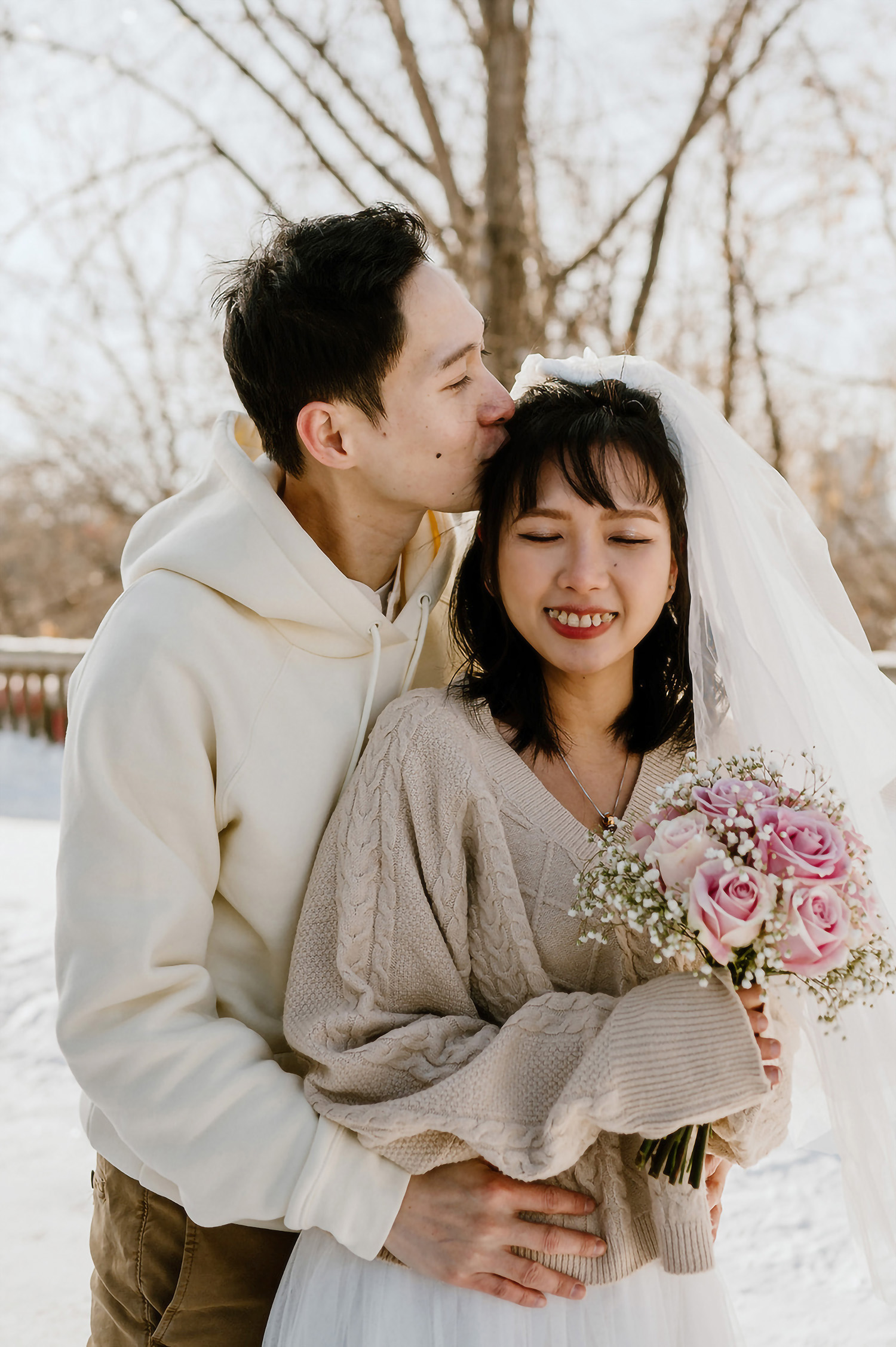 Xúng xính từ sớm, chúng mình đến điểm hẹn và đợi Kelsie, bạn photographer sẽ chụp hình cho chúng mình hôm đó. Thi thoảng vài người lạ lướt qua cười tươi với bọn mình và nói "Congratulations!", có 1 em bé nhỏ còn thỏ thẻ "You're beautiful!" - Làm cho Bích muốn rụng tim. Kelsie thì rất thân thiện và luôn chọc tụi mình cười để có những thướt ảnh chân thật nhất. Bạn ấy thích chụp những điều vốn có của chúng mình, làn da đỏ vì lạnh, tàn nhang hay dấu chân chim, cả những lúc chớp mắt, bạn ấy sẽ giữ lại hết như là vẻ đẹp của khoảnh khắc.